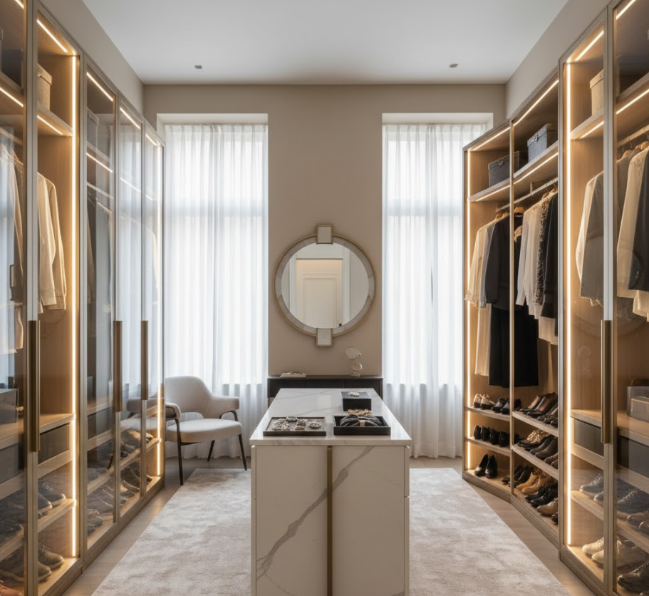 Modern luxury wardrobe design ideas for elegant bedrooms by Antarya Concepts.